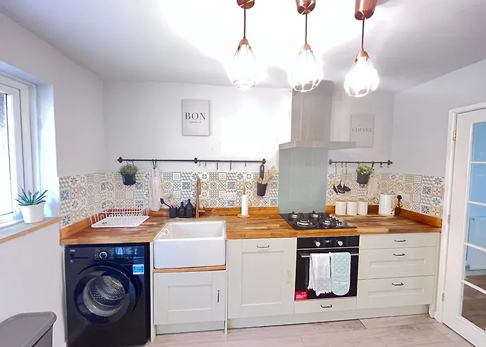 This Exeter villa for 6 guests is placed next to Bury Meadow City Park. The 3-bathroom villa is situated 250 metres from Millers Crossing Bridge of Exeter. Serving British specialities, The @34 is about 5 minutes' walk away. Holiday Home In Exeter Free Parking is set not too far from Mission Escape. The Exeter property is 5 minutes on foot from Jolly Porter bus station.