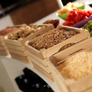 A buffet breakfast is available daily at the hotel. Guests can enjoy a meal at barbecue Tempus restaurant or a drink at the lounge bar. There is also a bar with different British dishes in the area.