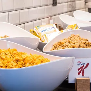 A buffet breakfast includes a range of food, such as eggs and sausages. Guests can relax and have a snack in the lounge bar.