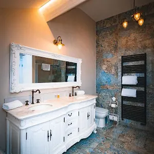 In addition, bathrooms include a walk-in shower and a separate toilet.