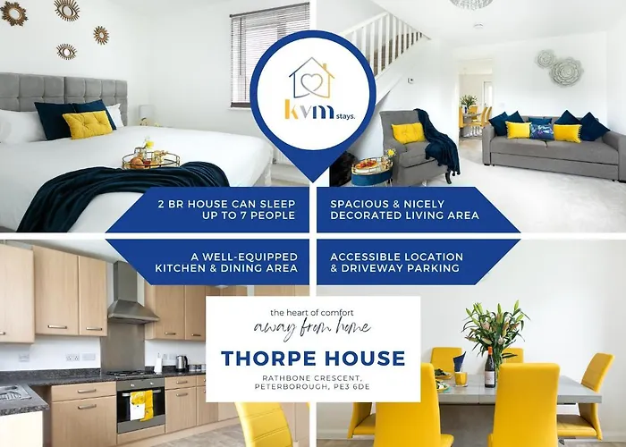 The 14th - century three - storey Longthorpe Tower is approximately a 10-minute ride from the premises, while River Nene is just a 10-minute walk away. A 10-minute walk will bring you to the centre of Peterborough. The Cresset Performing Arts Theater is also set approximately 3 km away. Cambridge airport can be reached in 75 km.
